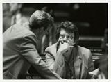 Senator Gen Olson and Senator Cal Larson discuss a bill with another senator during a Senate floor session, St. Paul, Minnesota.
